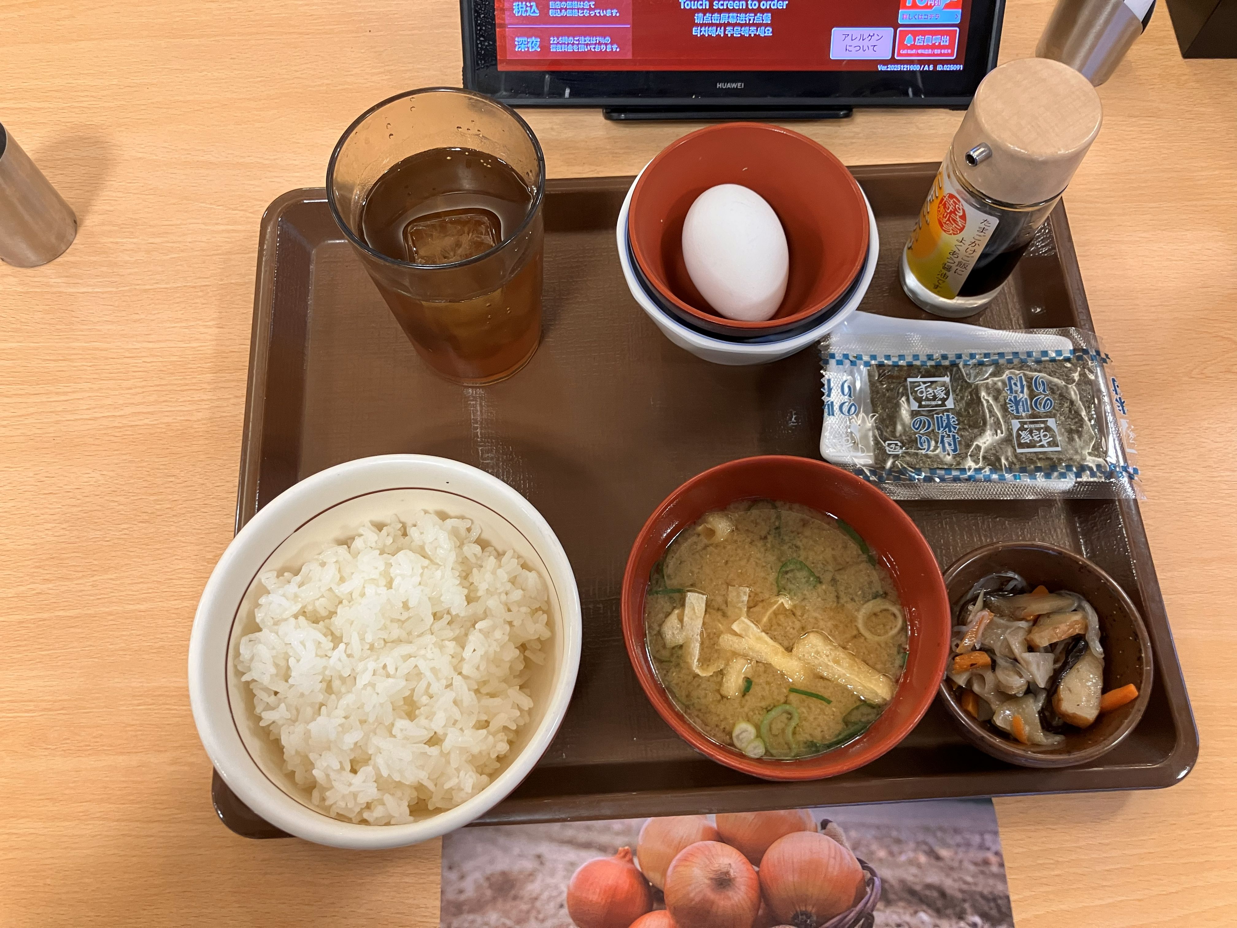 一人暮らしの為、自炊は難しいので、すき家さん朝食メニューを利用しています。